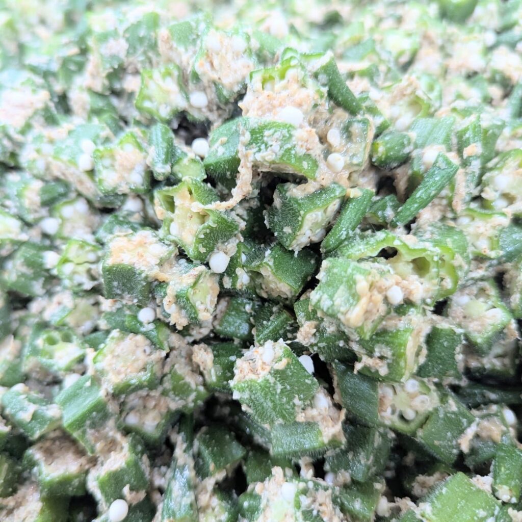 今が旬のオクラをたくさん使って、ゴマ味噌和えにしました。