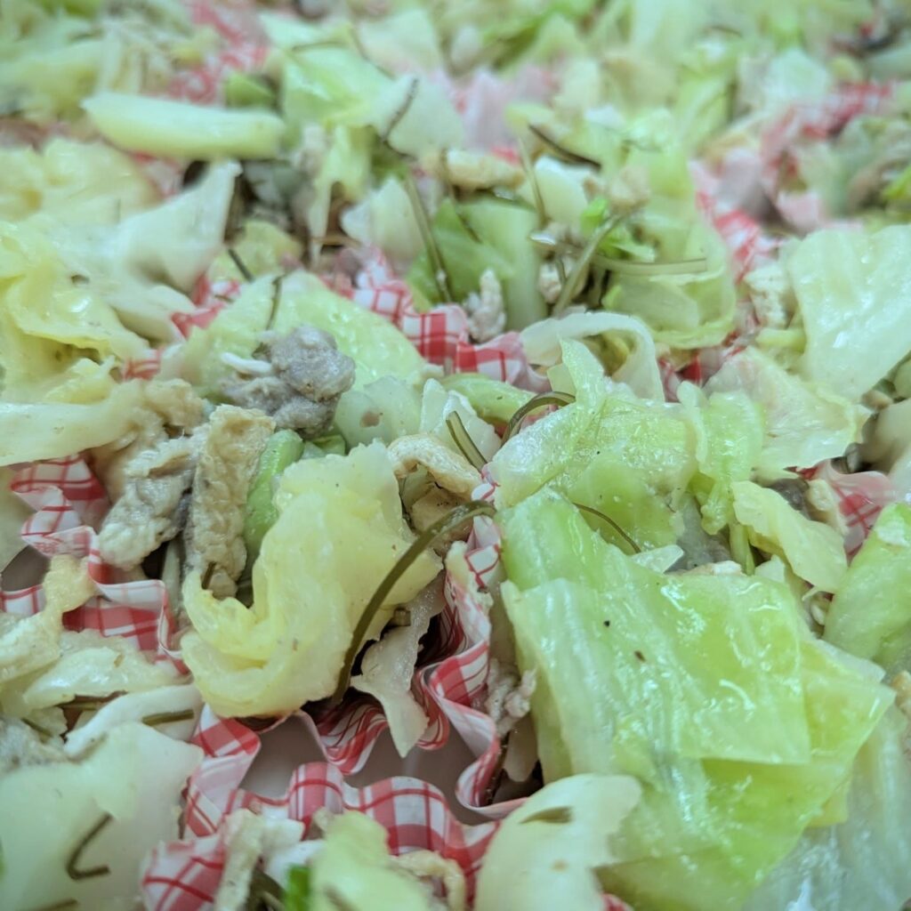 シャキシャキ食感のキャベツ、お出汁のきいた和風な味です。油揚げがコクをアップ⤴︎