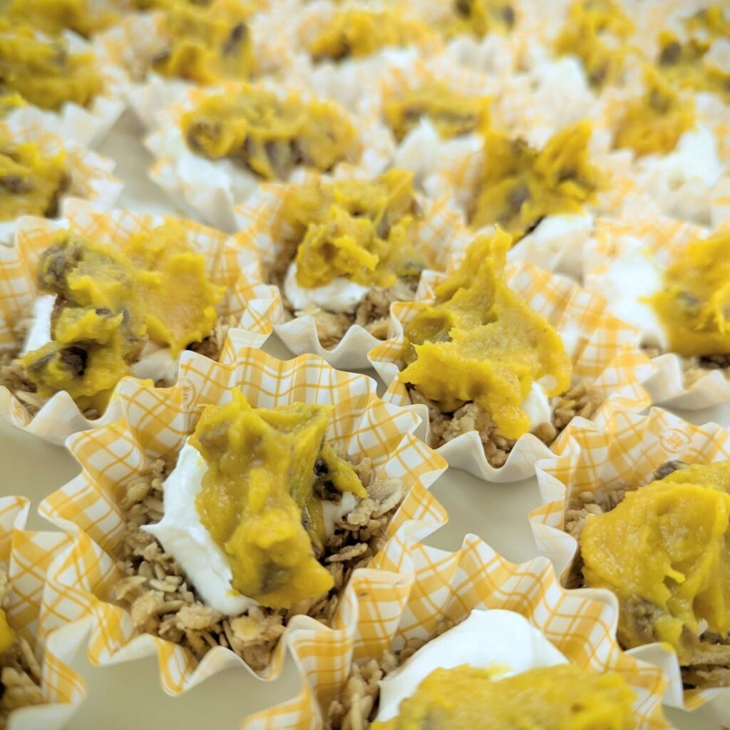 スタッフ前ちゃんちのロロンかぼちゃ🎃スイーツ用のロロンかぼちゃは繊維が少なく甘〜いのが特徴でなっちゃんがスイーツ用に大変身させた今日のミューズリーはハロウィンスペシャルヨーグルトミューズリーになりました❤️ご堪能ください☺️