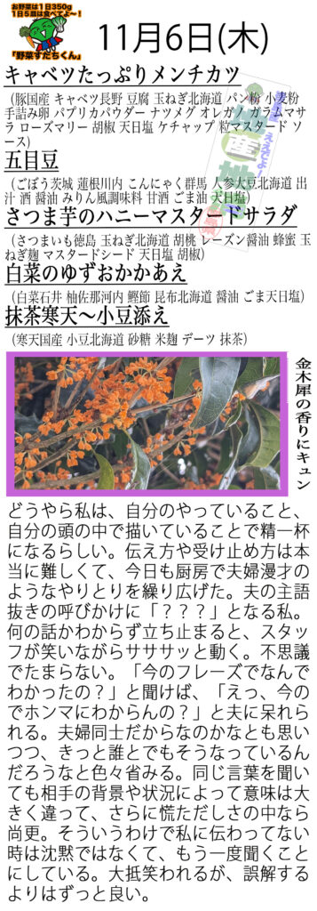 それでは今日のメニューの紹介です。