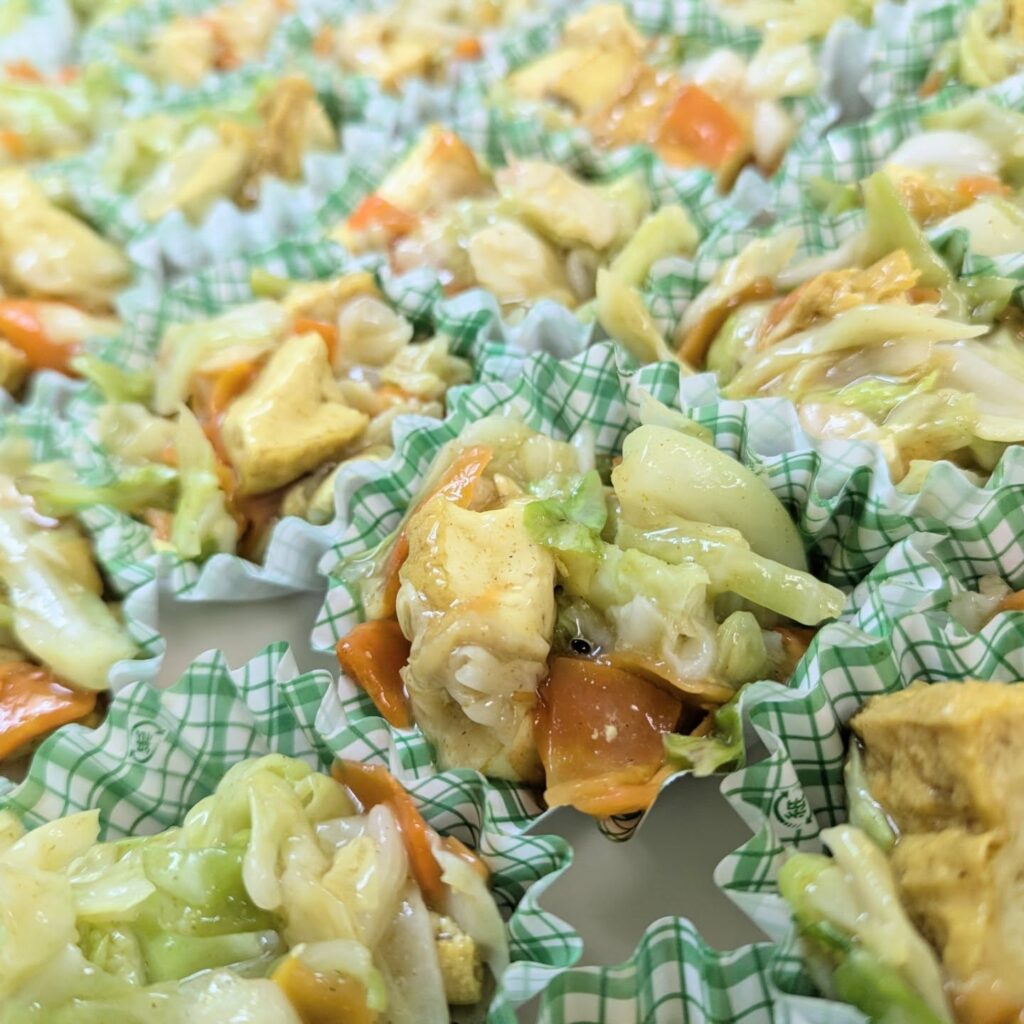 厚揚げ、人参、キャベツを使ってご飯がすすむカレー味に仕上げました。カレーの匂いに包まれた厨房では、「美味しそうな匂い♡♡」とスタッフもニコニコでした![]()