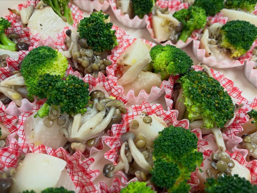 ブロッコリー、かぶら、しめじ、レンズ豆をポトフにしました。コンソメは使わずに玉ねぎ麹やオレガノ、ローリエ、ローズマリーなどのハーブが入ってます。
