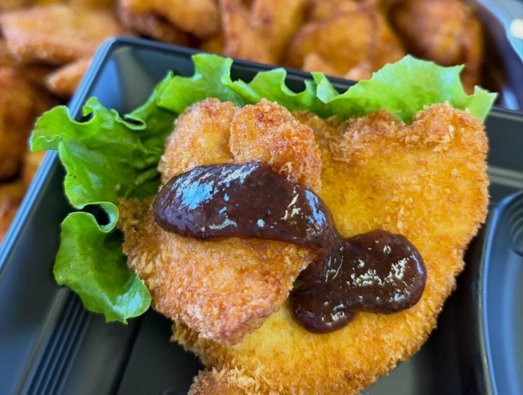 朝からカラッと揚げたチキンカツ。今日は梅ダレでお召しあがりください