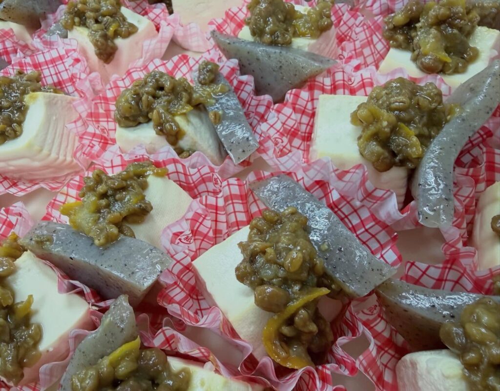 塩麹に漬けた豆腐とこんにゃくに、もろみ味噌を添えた。