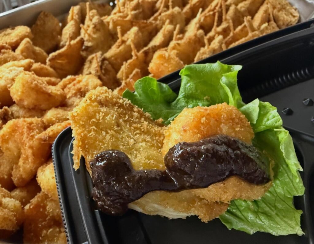 【エビフライと玉ねぎフライ~古代米味噌ソース~】