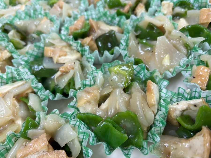 「先日まで温かい日が続いたので、ピーマンが取れました」ということで中華炒めにしました。