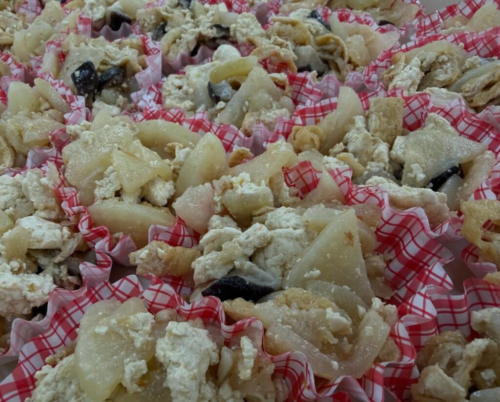ほっくり蒸した里芋とシャキシャキの水菜を合わせて、胡麻たっぷりの胡麻マヨサラダに仕上げました