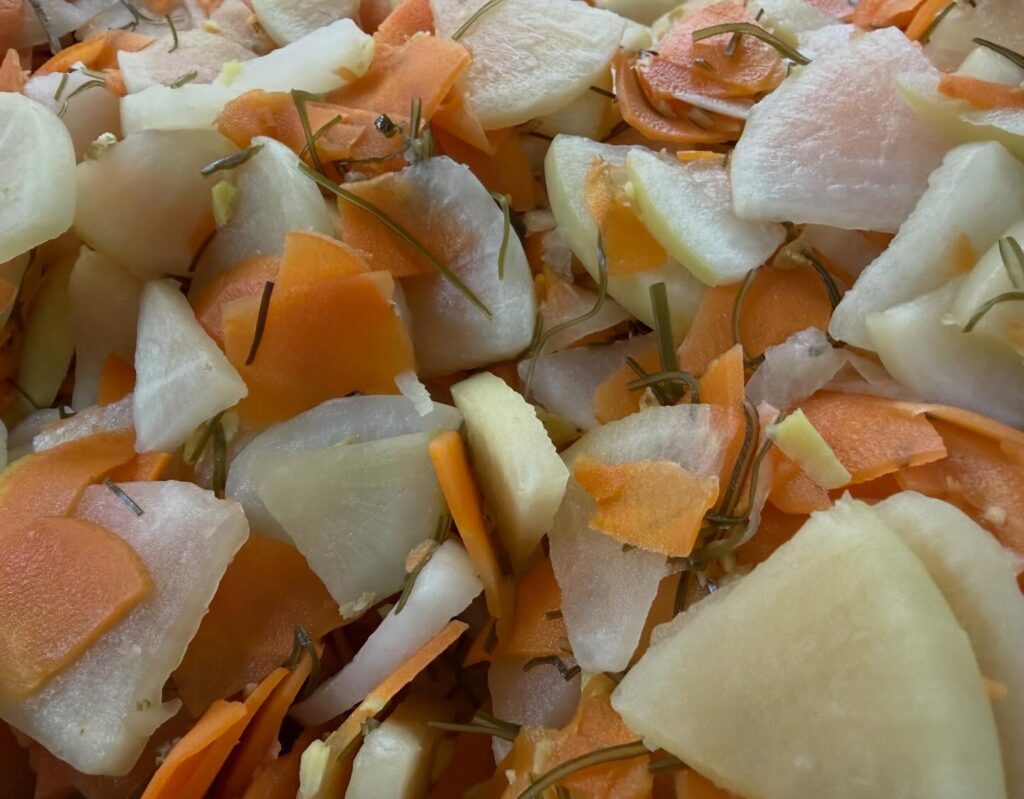 鶏肉は脂身等を取り除いて、タンサンにつけて雑味を洗い、塩麹に浸して柔らかくするとふっくら優しい味がつきます。