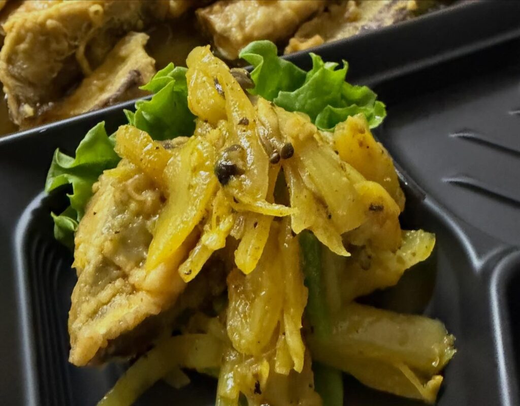 大きな鯵を贅沢に唐揚げにしています。タレにこくのある古代米味噌を加えた和風味のカレーあん![]()