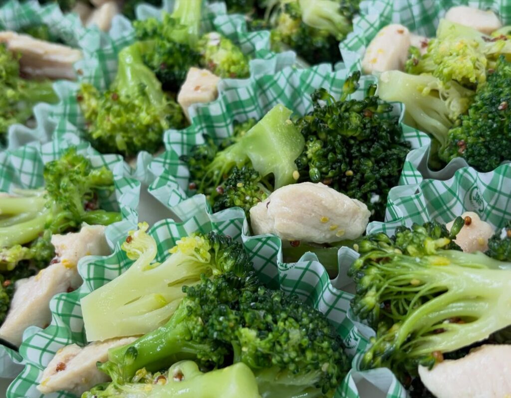 【ブロッコリーと蒸し鶏の粒マスサラダ】