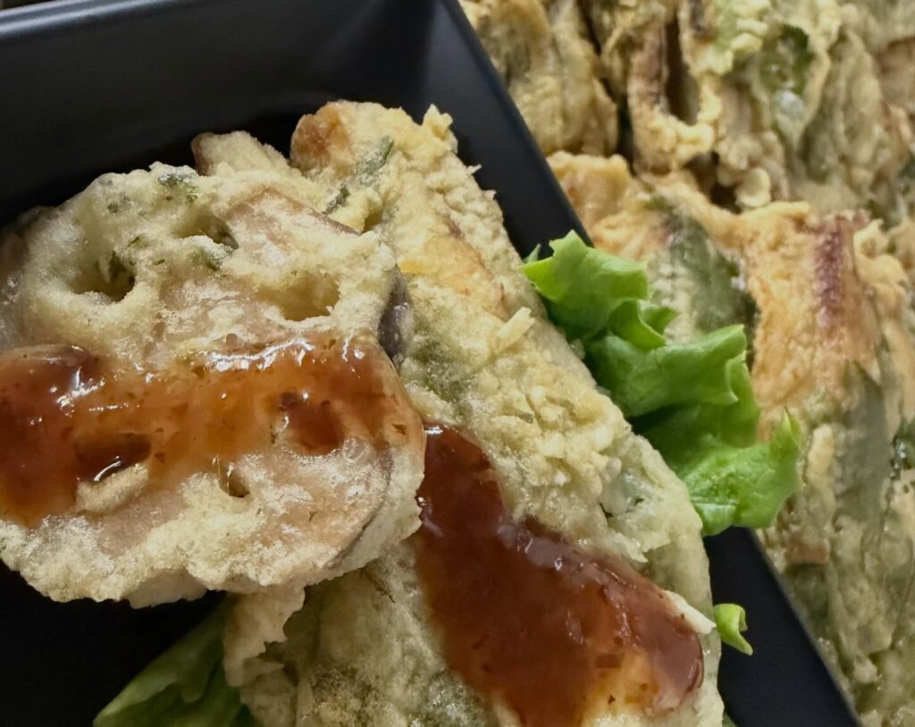 特製の梅ソースの『しそ巻き鰯とレンコン天』