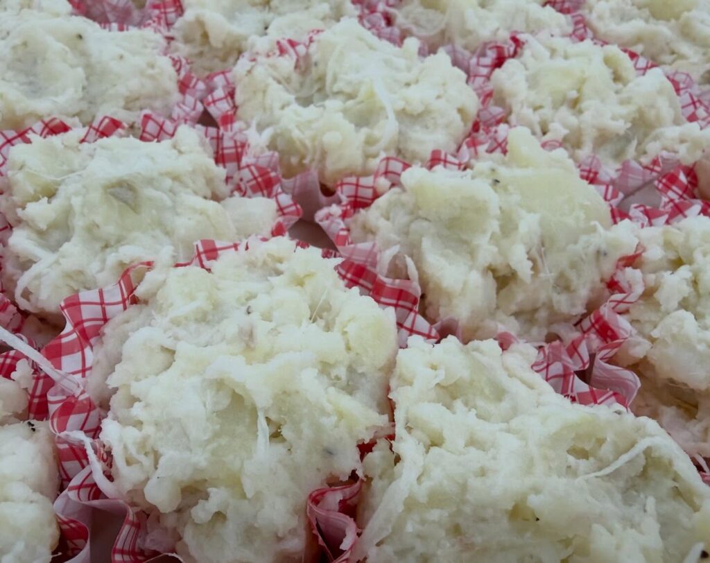 じゃがいもを丸ごとスチームして熱々のうちにマッシュしました。ホクホクのポテトサラダです。