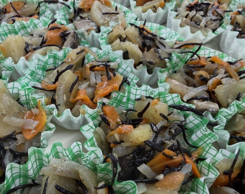 こんにゃく、ひじき、しいたけと旨味たっぷりの煮汁で大根を炊きました。ほっこりするお味です。