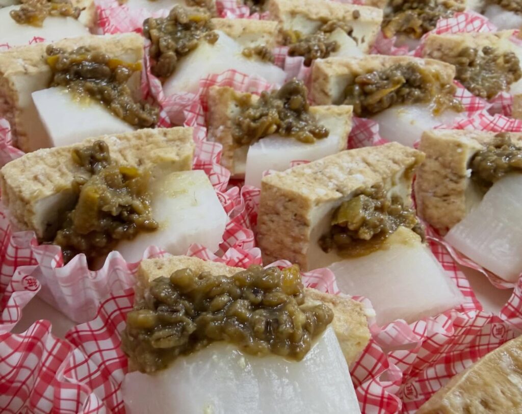 厚揚げに塩麹で下味をつけて焼いてます。旬の大根と発酵食材のもろみで旨みアップ!