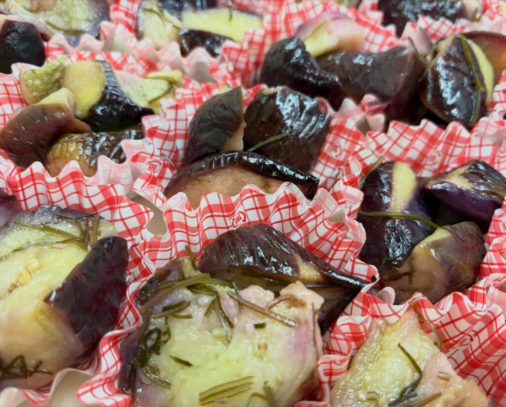 茄子を揚げ焼きにして甘酢に浸しました。柚子が香るさっぱりとした箸休めです。