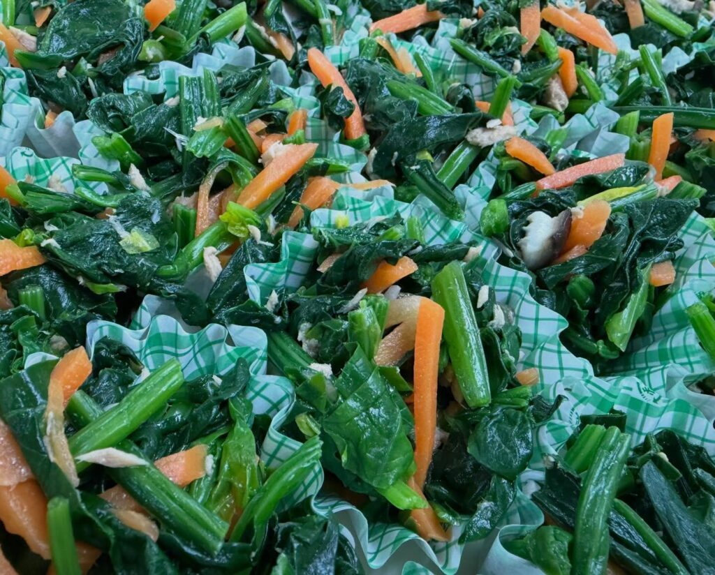 ほうれん草と人参、椎茸をお出汁を効かせた煮汁に浸しました。くったりとして野菜が沢山食べられます。