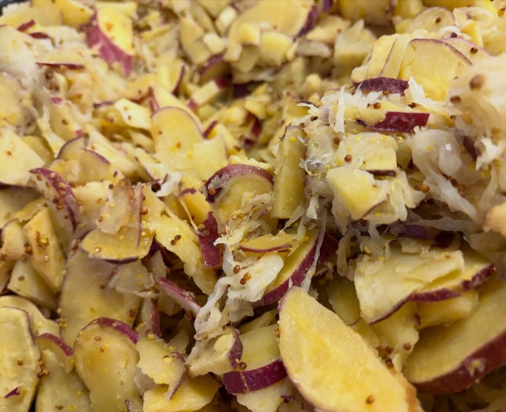さつまいもをカリッと焼き、ハニーマスタードソースで和えました!