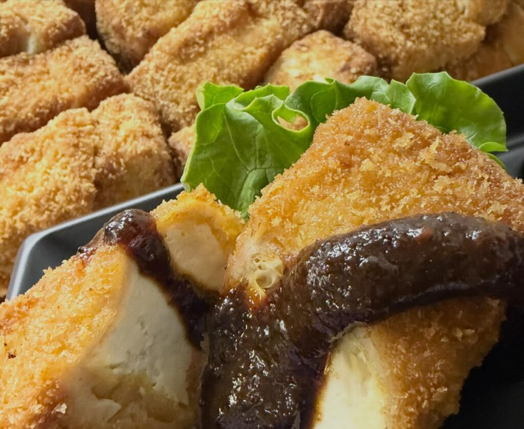 塩麹で下味をつけた厚揚げに、豚肉を巻いてフライに。これを作っている時の様子は初めて見ると結構面白い。仲間に入りたくなります。