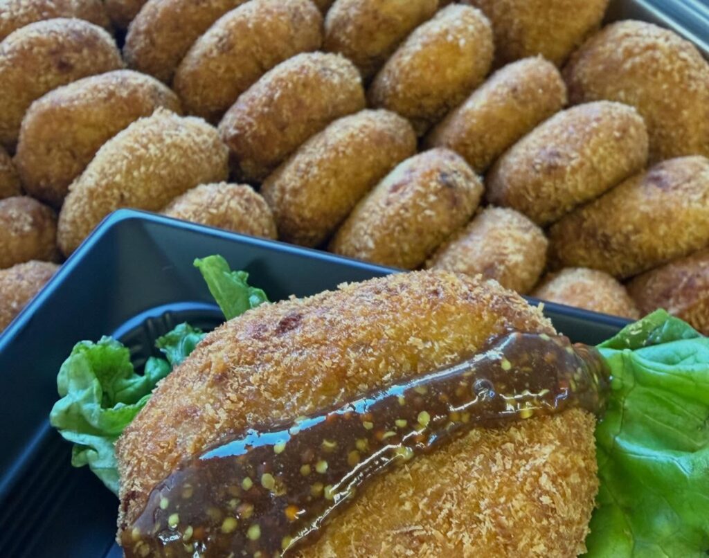 じゃが芋と違い里芋で作ったシットリしたコロッケです。具のシーチキンがとても良いアクセントになってます。