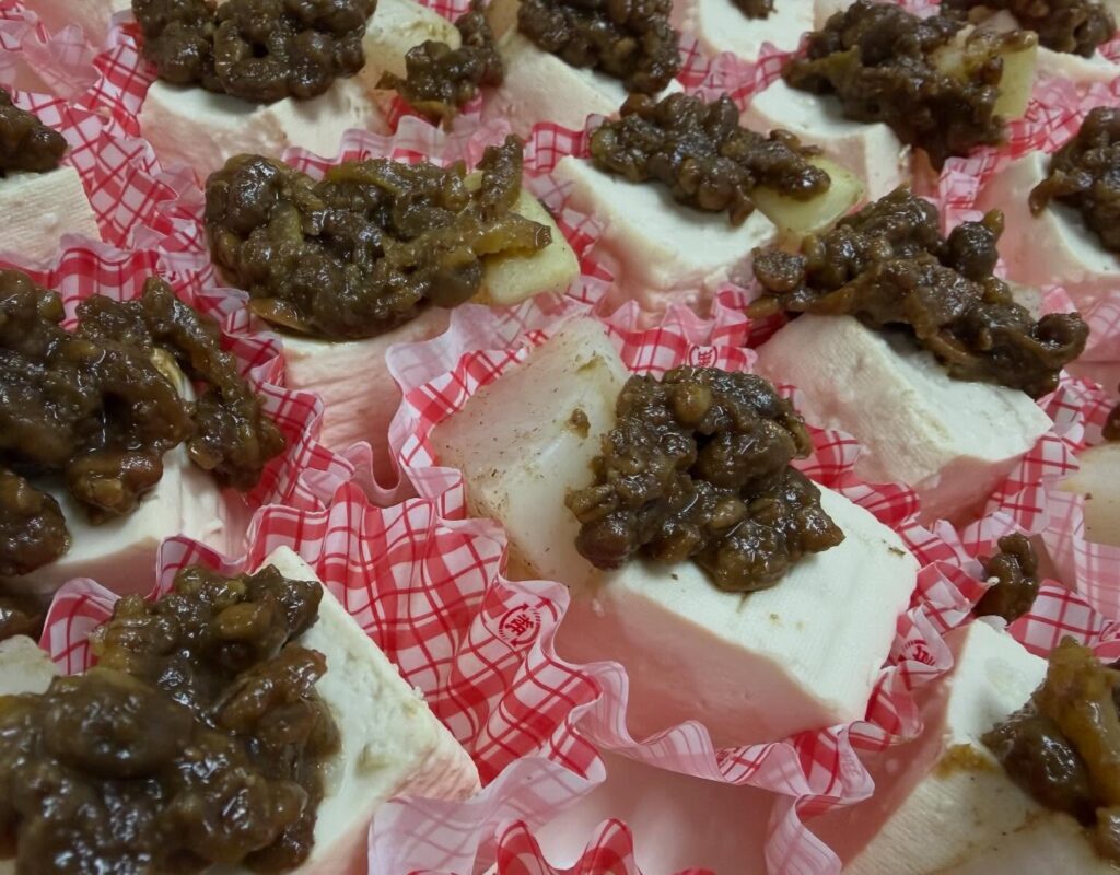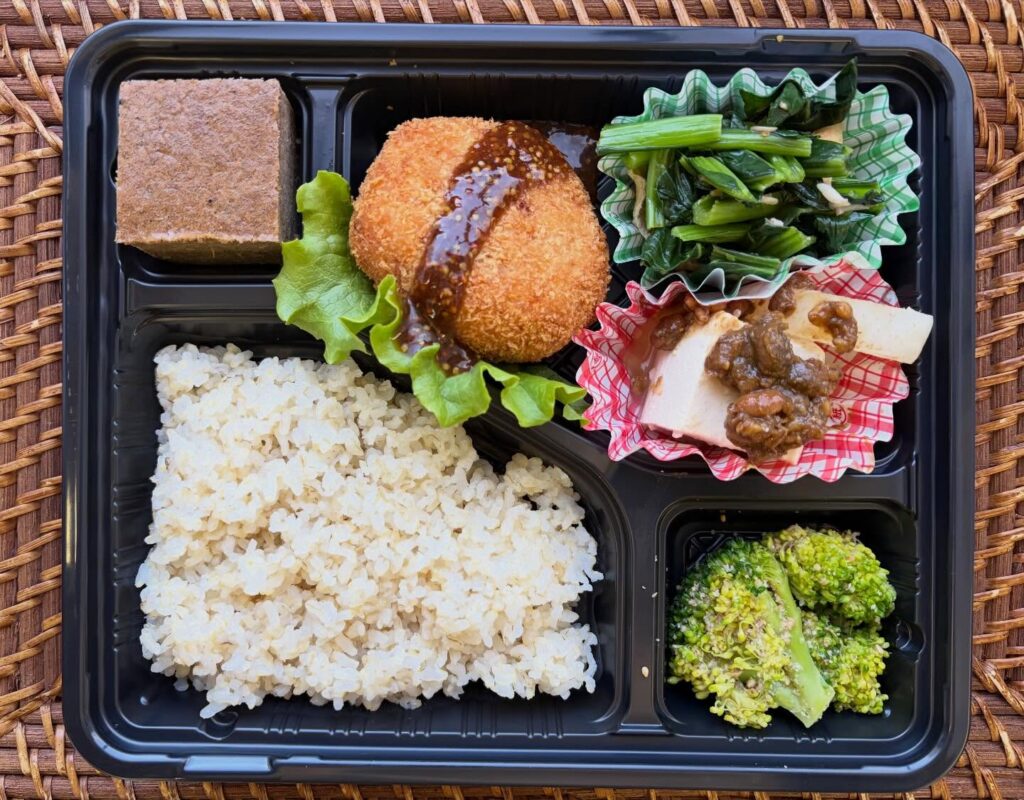 大豆とはだか麦に酒、ミリンなどを入れ3日間発酵させた自家製のもろみをかけた、ご飯が進む事間違いなしです。