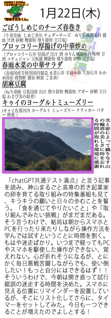 明日のおすすめは『イカとレンコンの天ぷら』『ラタトゥイユ』です。お楽しみに。