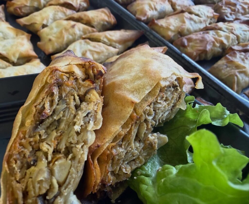 ごぼうとしめじをじっくりと炒めて胡麻和えにし、たっぷりのチーズを混ぜ込んで春巻きにしました。食べ応えと美味しさ間違いなしの一品です。