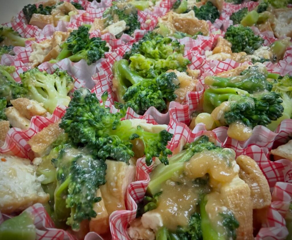 ブロッコリーと厚揚げの中華炒めです。生姜麹、塩麹などを使っていて麹の旨味も入ってます。