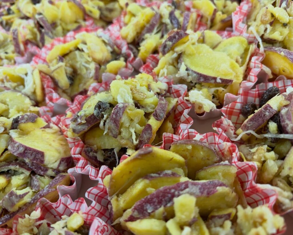 揚げ焼きしたほくほくのさつまいもに、レーズンとくるみを合わせたコクのあるマヨサラダ。甘さと食感のバランスが◎です。