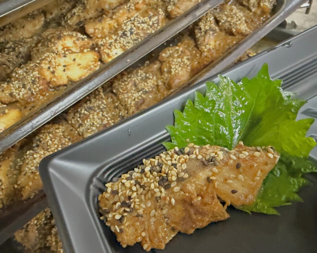 鱈の切り身にYOME厨房特製味噌を塗ってたっぷりの胡麻をまぶして焼き上げました。