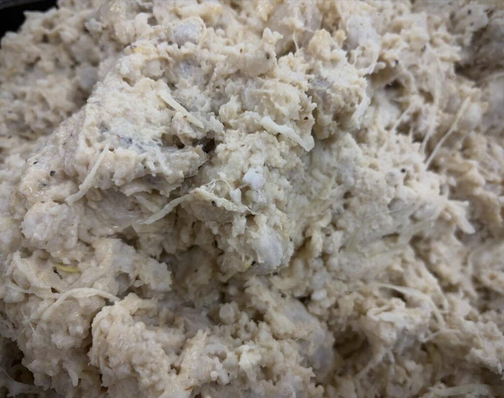 ねっとり美味しい里芋と玉ねぎをゴマをたっぷり和えてマヨネーズでサラダにしました。