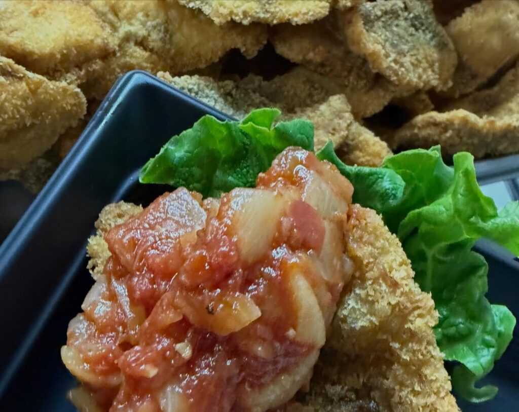 玉ねぎたっぷりのトマトソースで『お魚フライ』