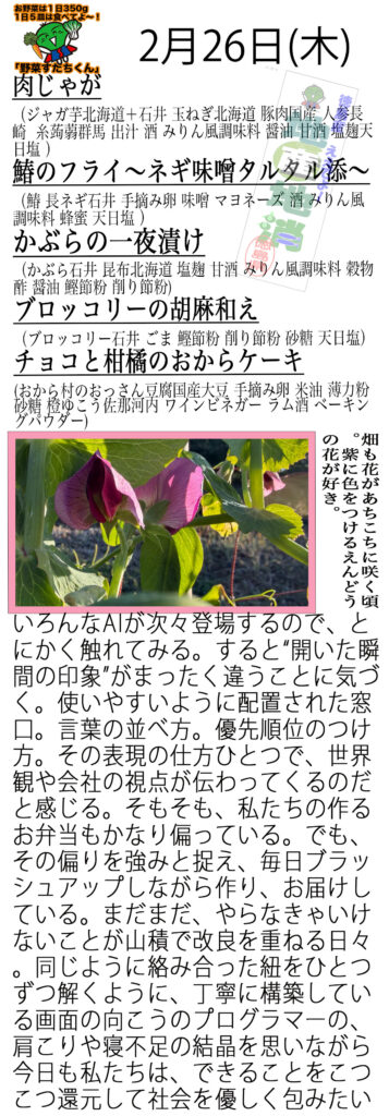 それでは今日のメニューの紹介です。