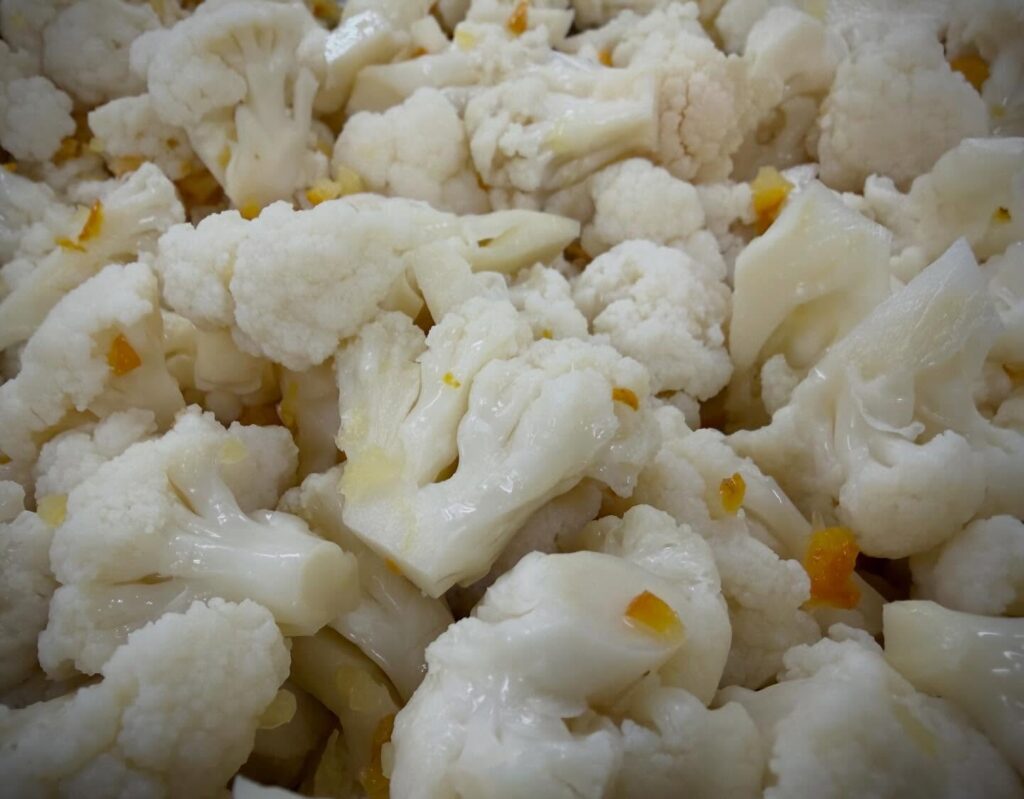 さっと湯通ししたカリフラワーは、yome厨房で手作りしましただいだいとゆこうのピールを上手に使い、サラダにしました~