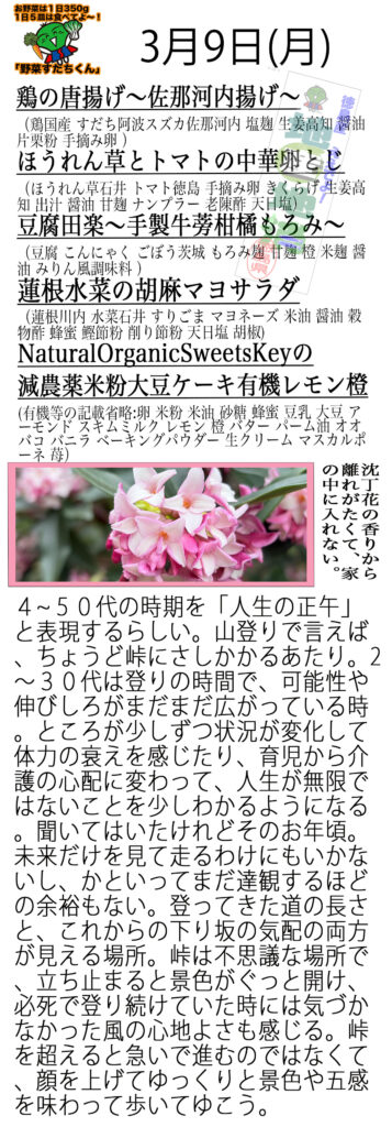 週末は寒さが戻りました。雨もたくさん降ってくれて、田畑に潤いが戻り、寒さと雨をいつもとは違ってどこかホッと感じています。暖かいのがありがたいし、晴れの日も嬉しいけれど、やっぱり雨や寒さも大事だなと。その分、着る服を毎朝確認するのは私だけでしょうか?皆さんはいかがお過ごしですか?
