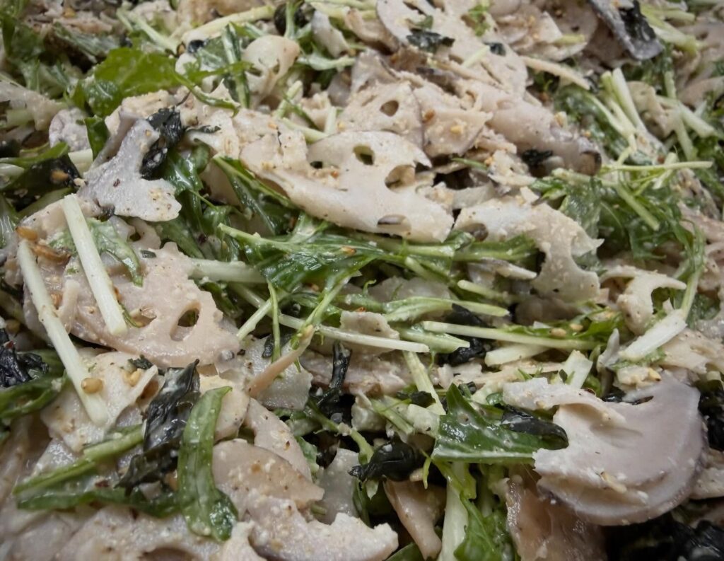 【蓮根水菜の胡麻マヨサラダ】
