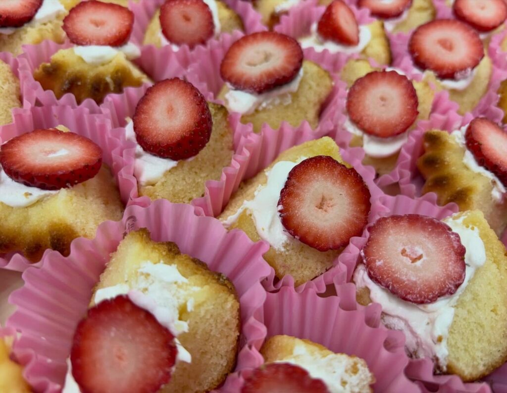 シャキラちゃんが一つ一つ大事に作って厨房に届けてくれています。毎回いろんな景色を見ながら届けてくれるしゃきらちゃん、今日はレモンケーキの生クリームの上にイチゴが載って嬉しい![]()