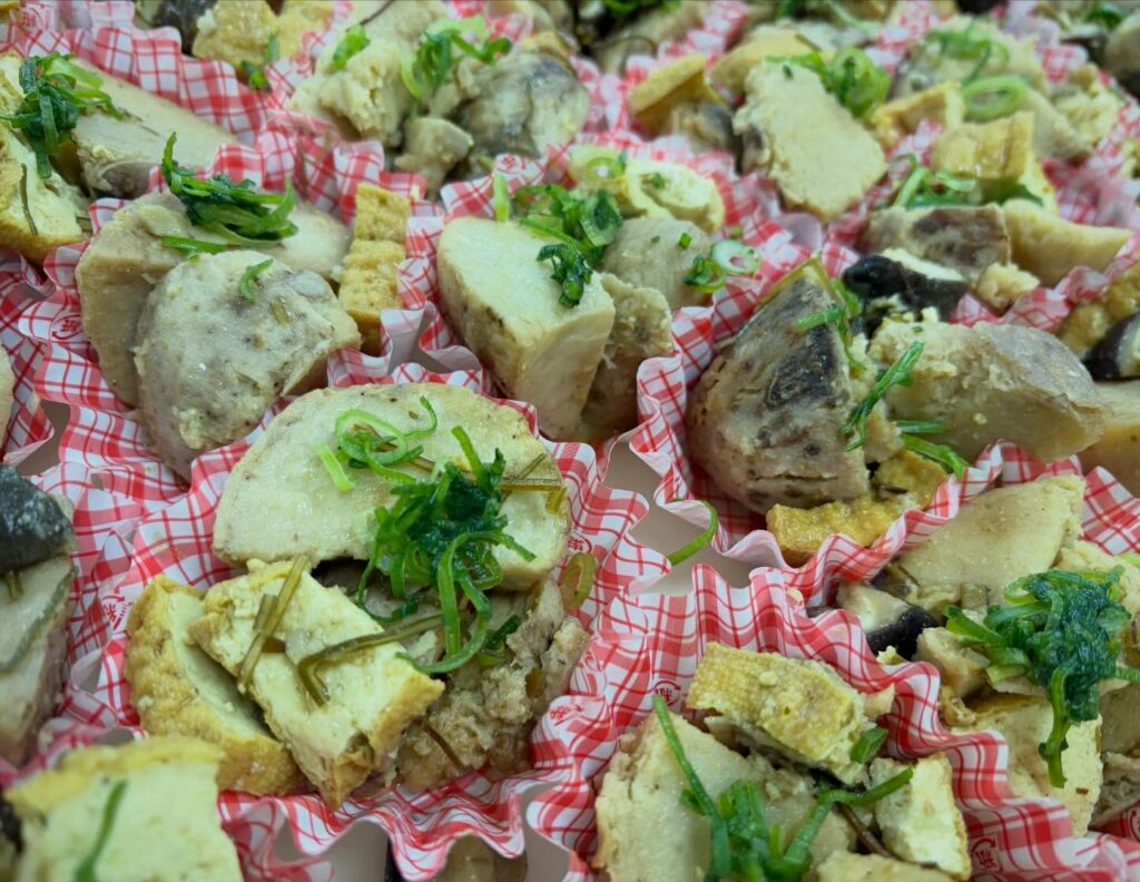 蒸してから素揚げした里芋と、しいたけ、厚揚げを和風カレー味噌煮にしました。
