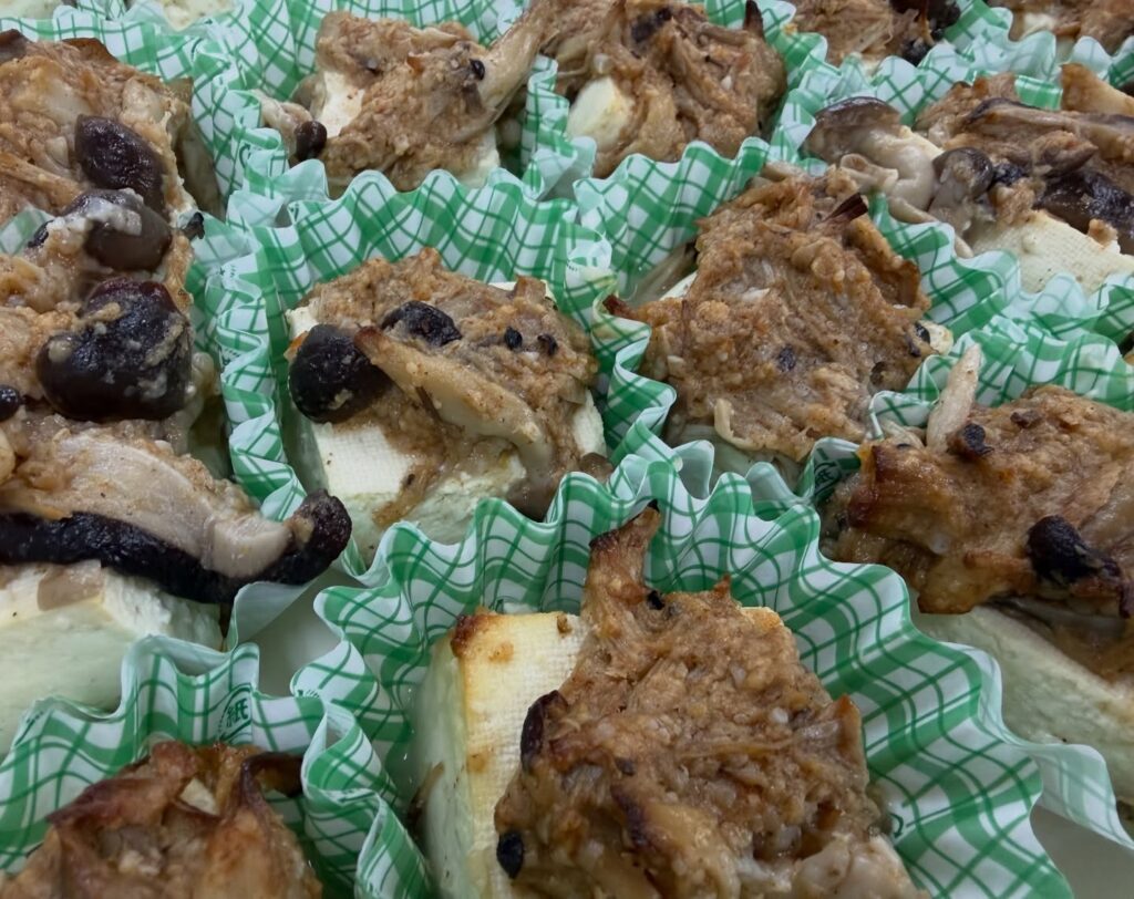 いろいろキノコがのったお豆腐はほんのりピリ辛味のステーキに![]()