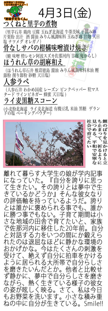 それでは本日も桜が満開の佐那河内よりお弁当をお届けします!