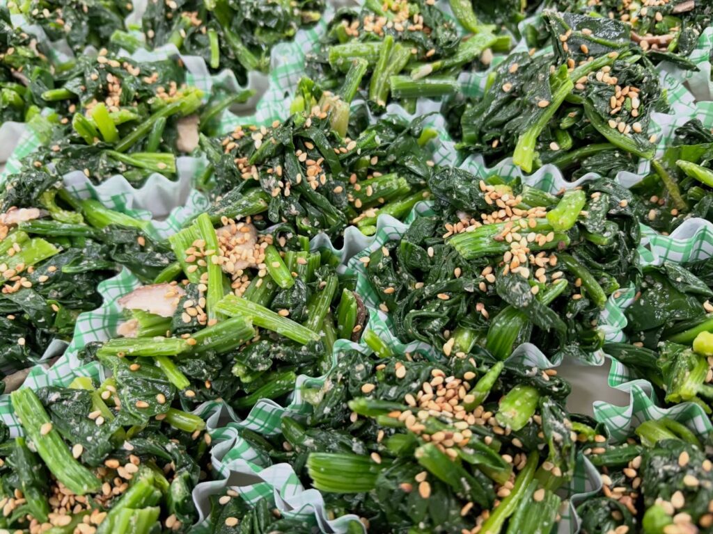 新鮮なほうれん草をたっぷりのすり胡麻を使い、ごま和えにしました。