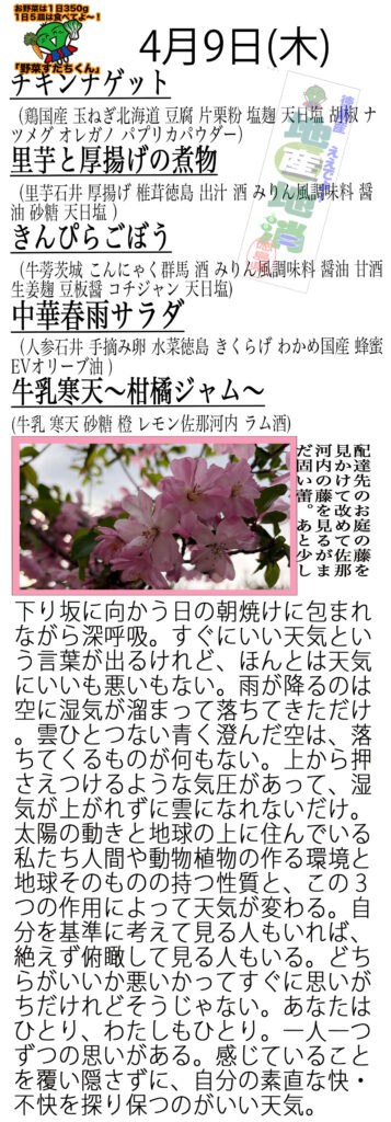 明日のおすすめは『鰆のフライタルタル』『さつまいも大豆甘辛』です。お楽しみに。