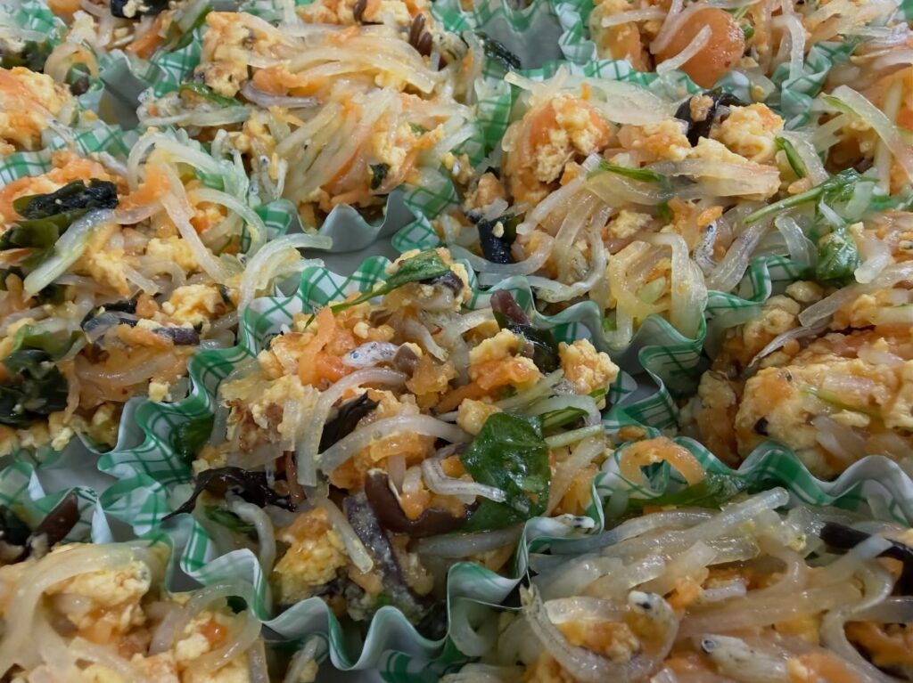 ごぼうとこんにゃくを甘辛く炒めてきんぴらにしました。今日は豆板醤も入れてピリ辛になっています。
