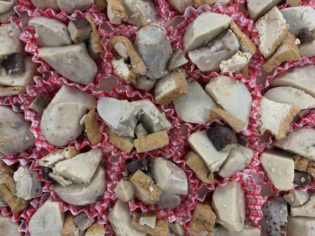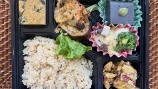 スチームした里芋を厚揚げ、椎茸と一緒にお出汁でコトコト煮た具沢山の煮物です。煮物はほっこりとしますね。