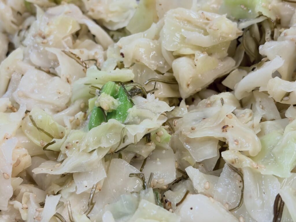 キャベツを切り昆布、塩麹などでさっぱり一夜漬けにしました!