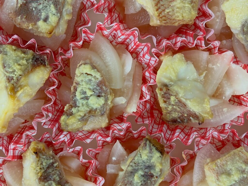 赤魚を白味噌、鬼からし、生姜すりおろしでみそ漬けにしました。味の染み込んだ大根と一緒に召し上がれ♡