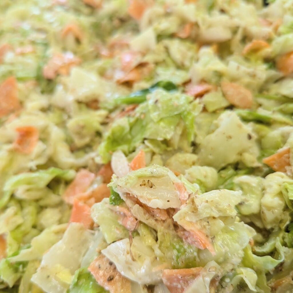 キャベツを軽く茹でて、ごまのコクとマヨネーズで和えました。